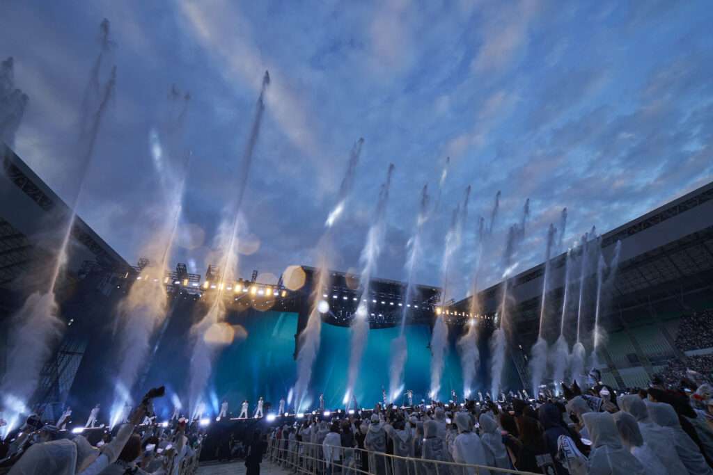 そして「(YOU SHINE)THE WORLD」でメインステージに戻り、歌い進めていくと「さぁタオルの準備、そして濡れる準備できてますか!」とØMIが伝え、スリーカウントで大量の水がセンターステージからスプラッシュ!