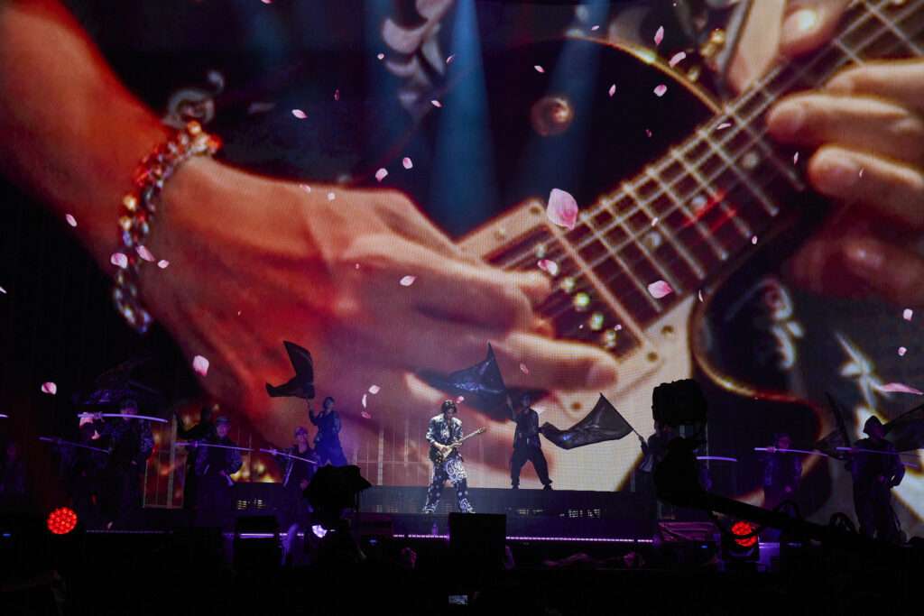 小林は刀を使った武士的なパフォーマンス。「S.A.K.U.R.A.」に合わせ季節外れの桜吹雪が吹き荒れる。最後にはギタープレイも見せ観客を引き込んだ。
