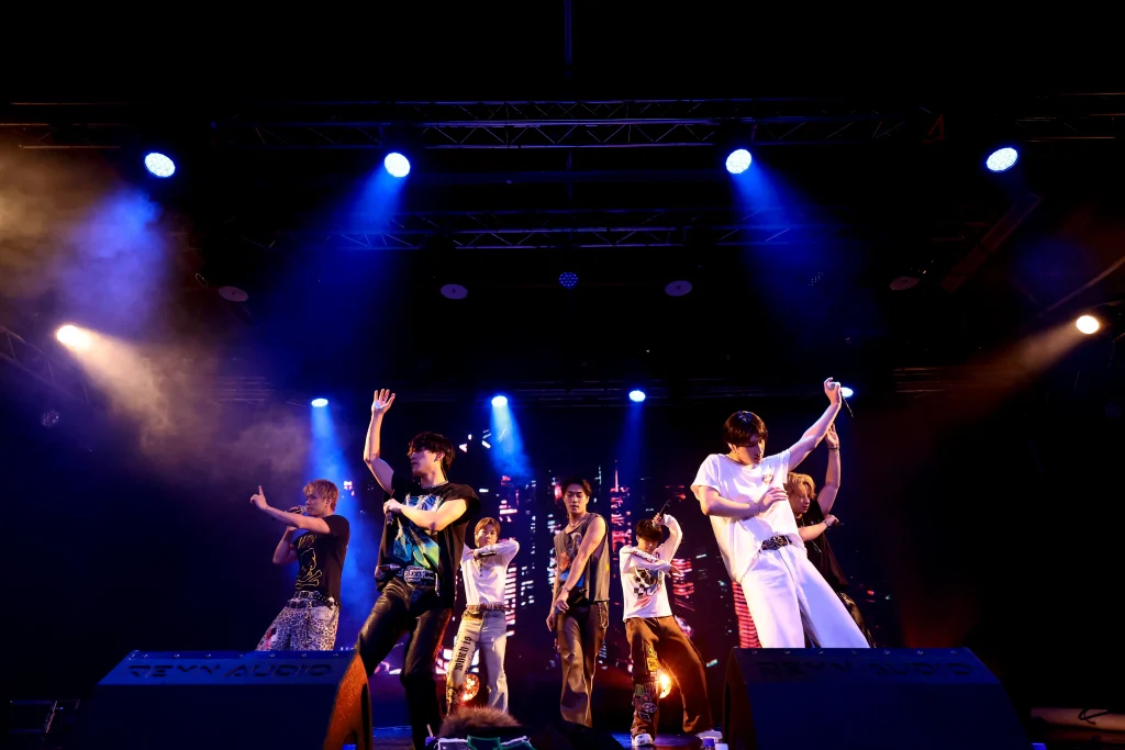 松井利樹が「Hands Up!」と煽ると、観客は一斉に手をあげてリズムに身を委ね、会場は大きな一体感に包まれた。