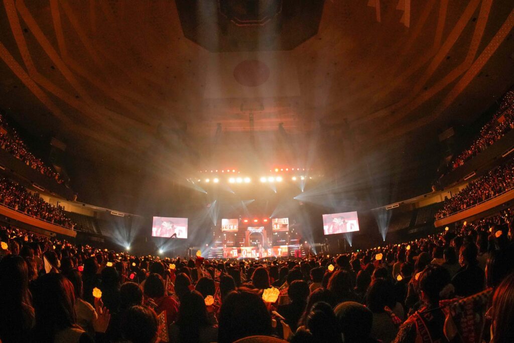 2曲目「Put Your Hearts Up feat. PKCZ®」は、2024年にPKCZ®を客演に迎えて制作したジャンプ曲。「武道館、みなさんの手でハートを作って浴びていきましょう!」という掛け声を合図に、観客は一斉にペンライトを掲げた。