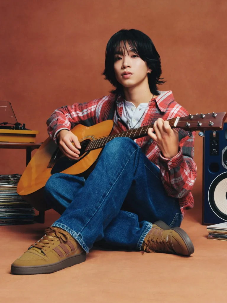 ギターやレコードなど、自身の“好き”とともに過ごす等身大のスタイルを切り取ったビジュアルが印象的です。