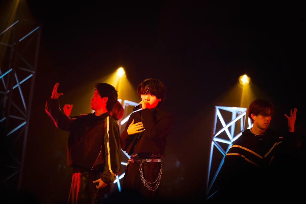 間髪入れずに続く『Higher Ground』では、福澤が「ペンライトの色を赤色に!」と呼びかけ、赤く染まった会場でメンバーも一緒にペンライトを握った。佐藤の高音とエッジの効いたラップのコントラストが楽曲を際立たせると、続く『DRAMA』でテンポよくリズムを刻み、ノンストップで深みへ誘う。
